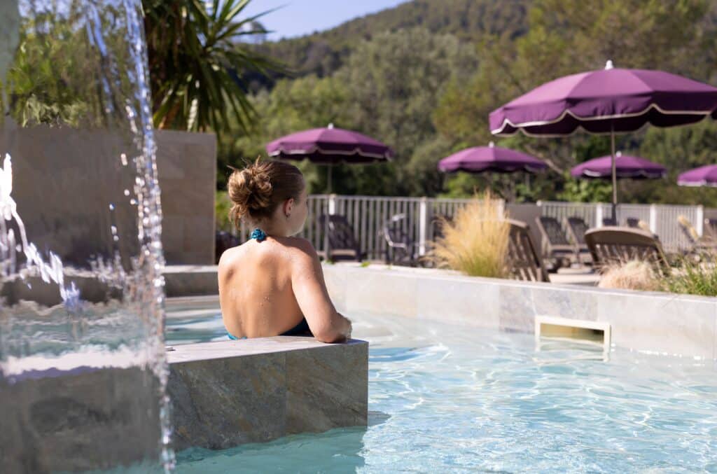 La cascade et les jets massants complètent l’expérience, offrant un véritable moment de lâcher-prise et de bien-être.